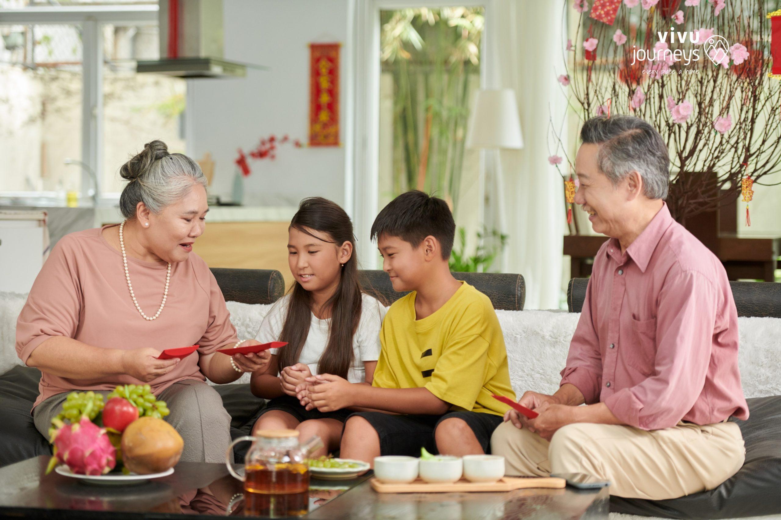 Children eagerly anticipate receiving Li Xi (Red Envelopes) filled with money from elders. These envelopes symbolize blessings of Health, Happiness, and Prosperity. In return, children offer well-wishes to their elders.